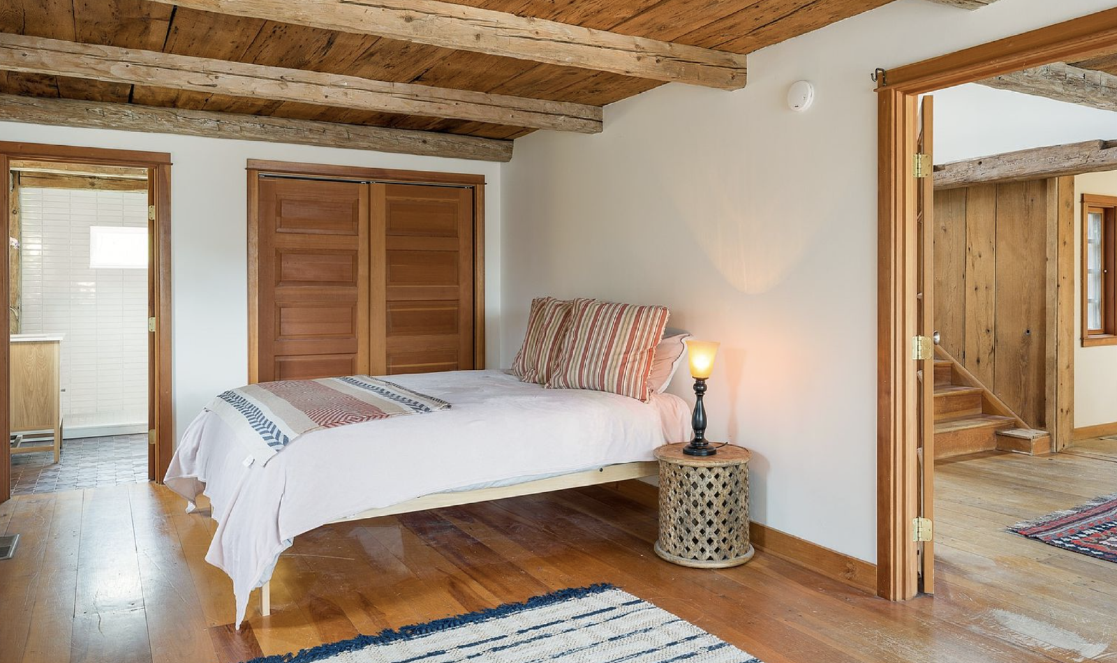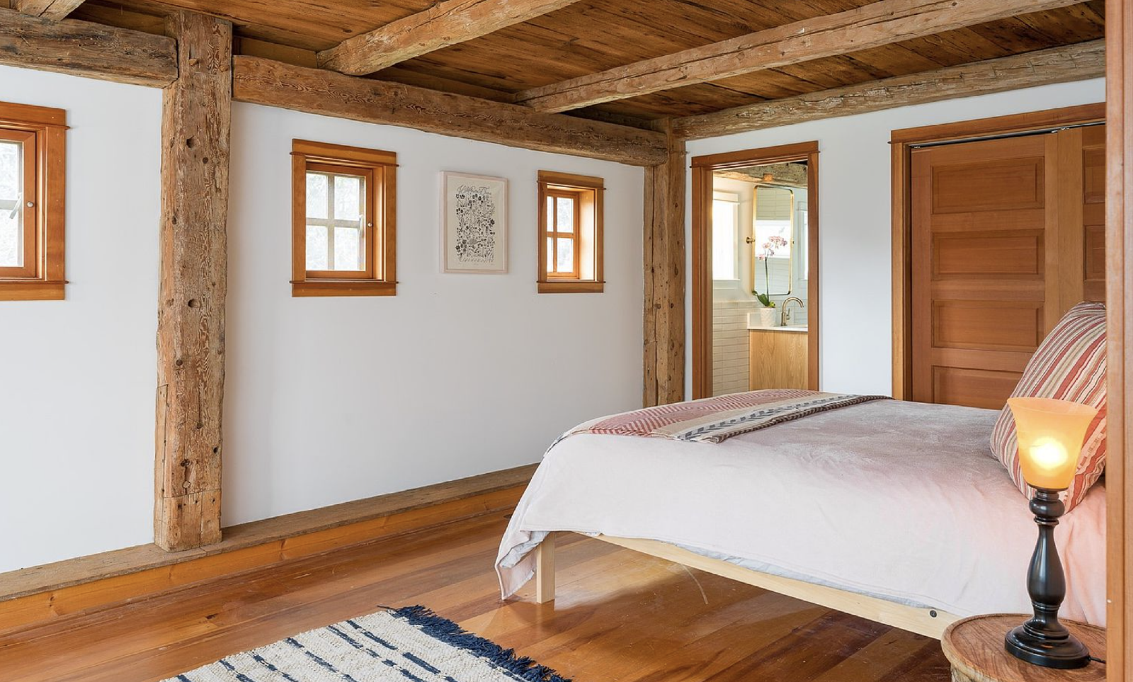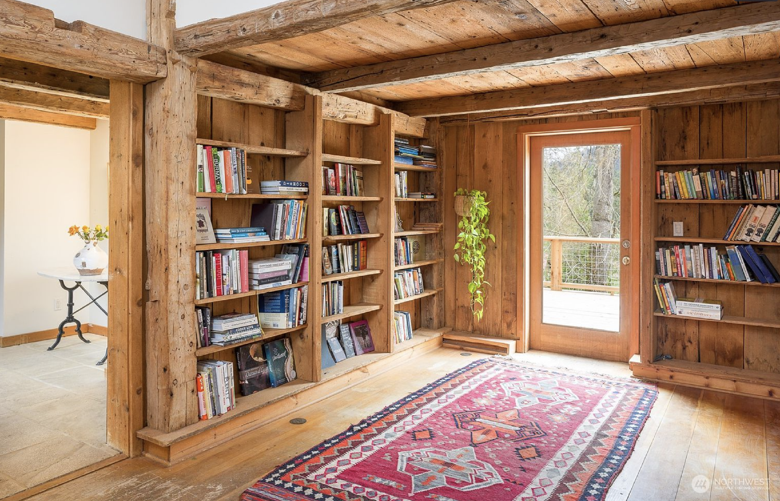 This 2 bedroom + office, 2.5 bathroom, 3900 square foot custom home has soaring ceilings, historic wood beams, limestone floors, a chef's kitchen, EV Charger, new Panoramic View Cedar Sauna, and a large deck overlooking an acre private lawn and pond. There is also a fully irrigated garden and a beautiful orchard surrounding the property. Partial furnishings available.