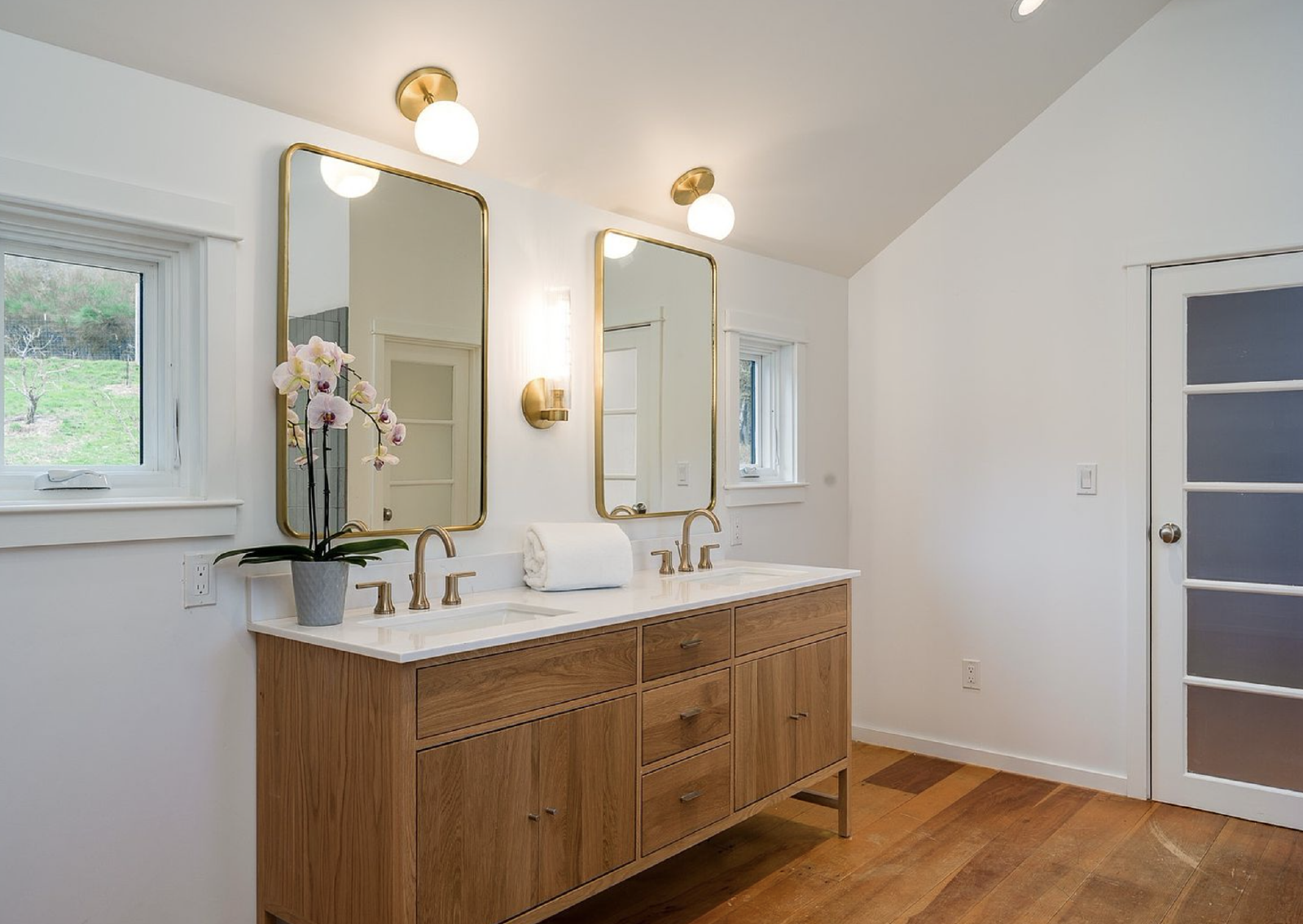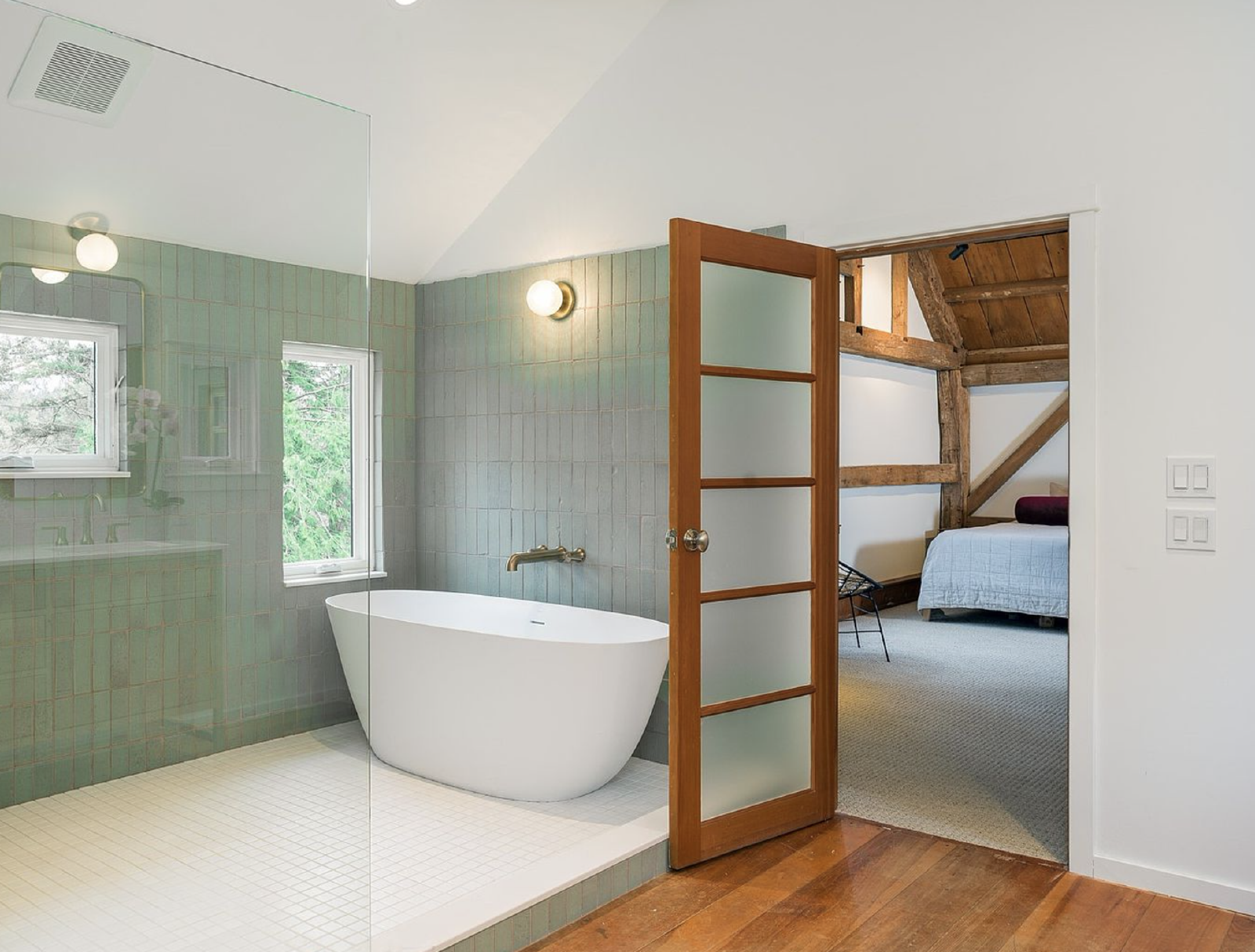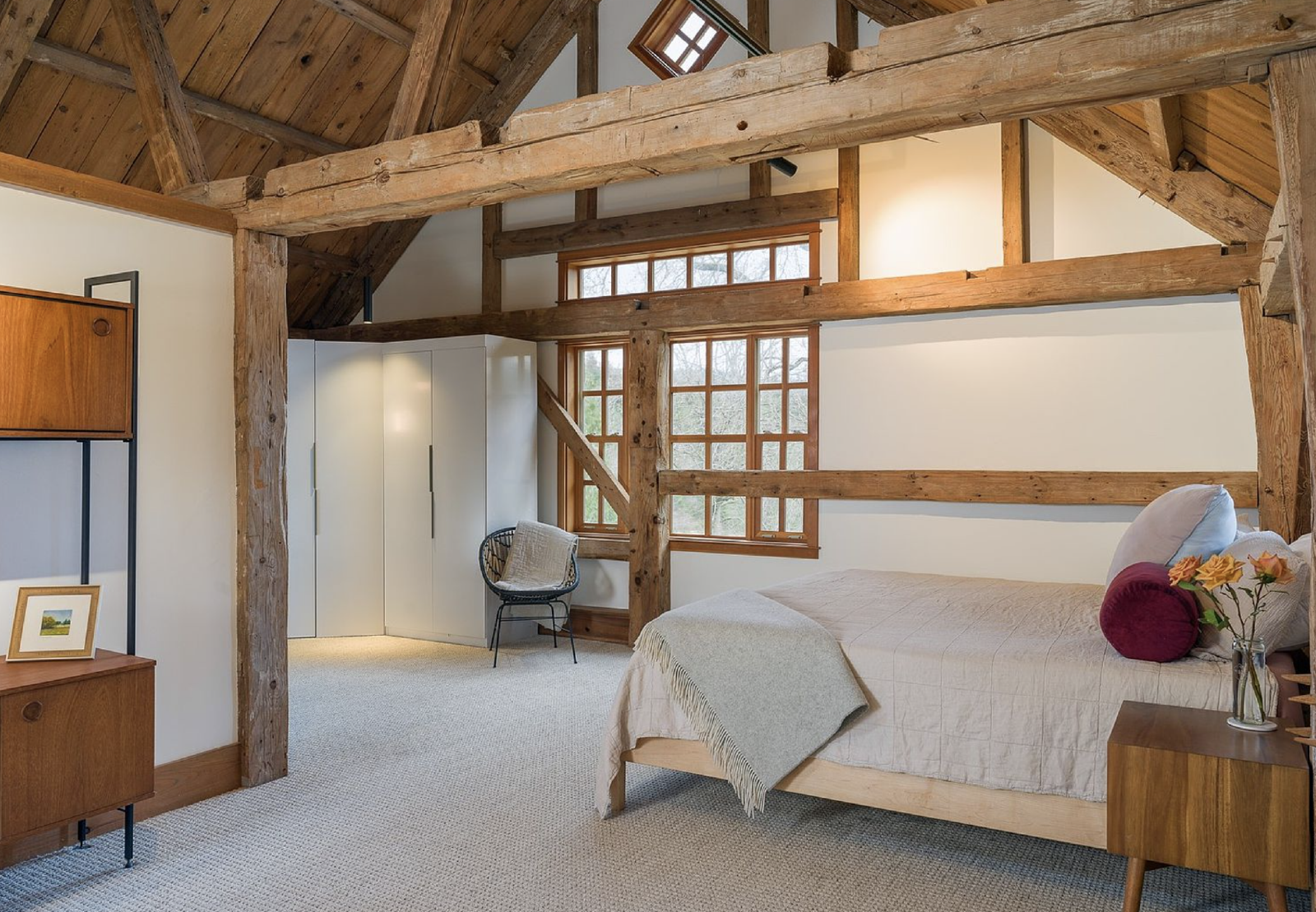 This 2 bedroom + office, 2.5 bathroom, 3900 square foot custom home has soaring ceilings, historic wood beams, limestone floors, a chef's kitchen, EV Charger, new Panoramic View Cedar Sauna, and a large deck overlooking an acre private lawn and pond. There is also a fully irrigated garden and a beautiful orchard surrounding the property. Partial furnishings available.