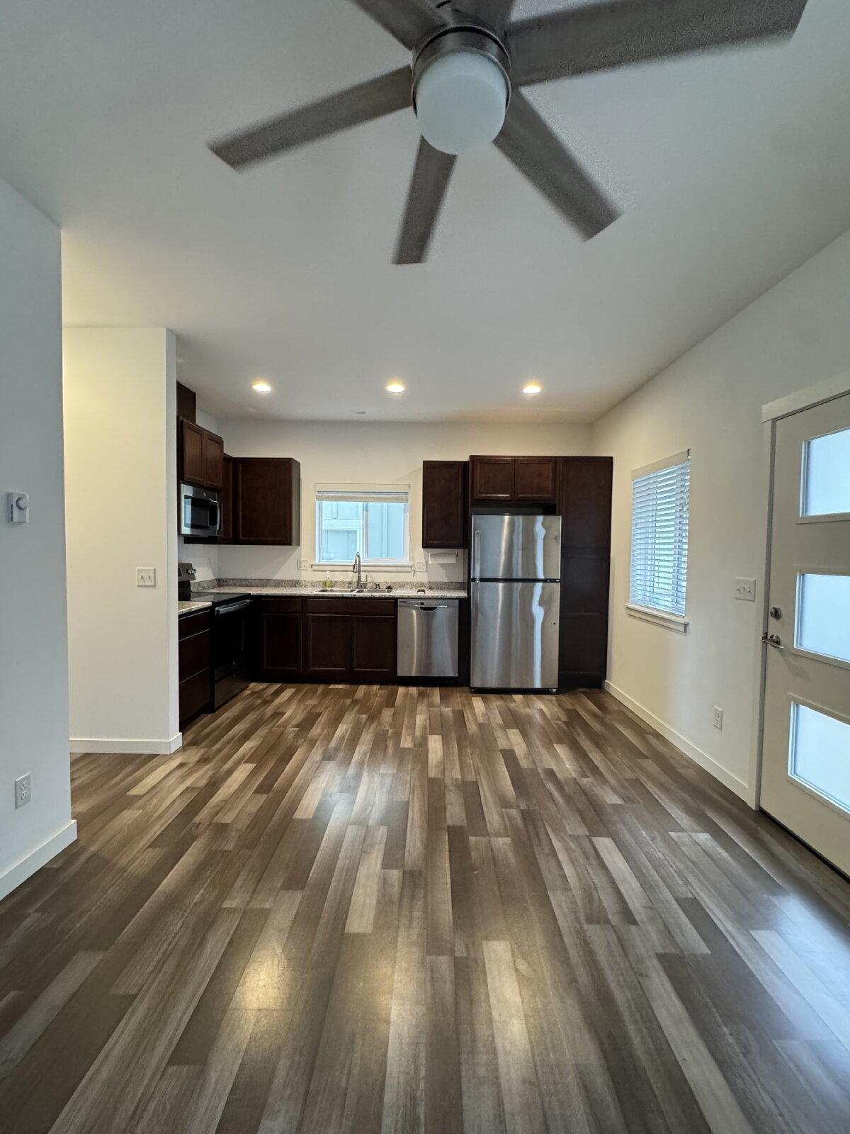 Modern 3-bedroom, 2-bathroom home built in 2021 with bright open living spaces, in-unit laundry, and a private balcony off the main bedroom. Pet-friendly (with approval) and utilities like water, sewer, and trash included.